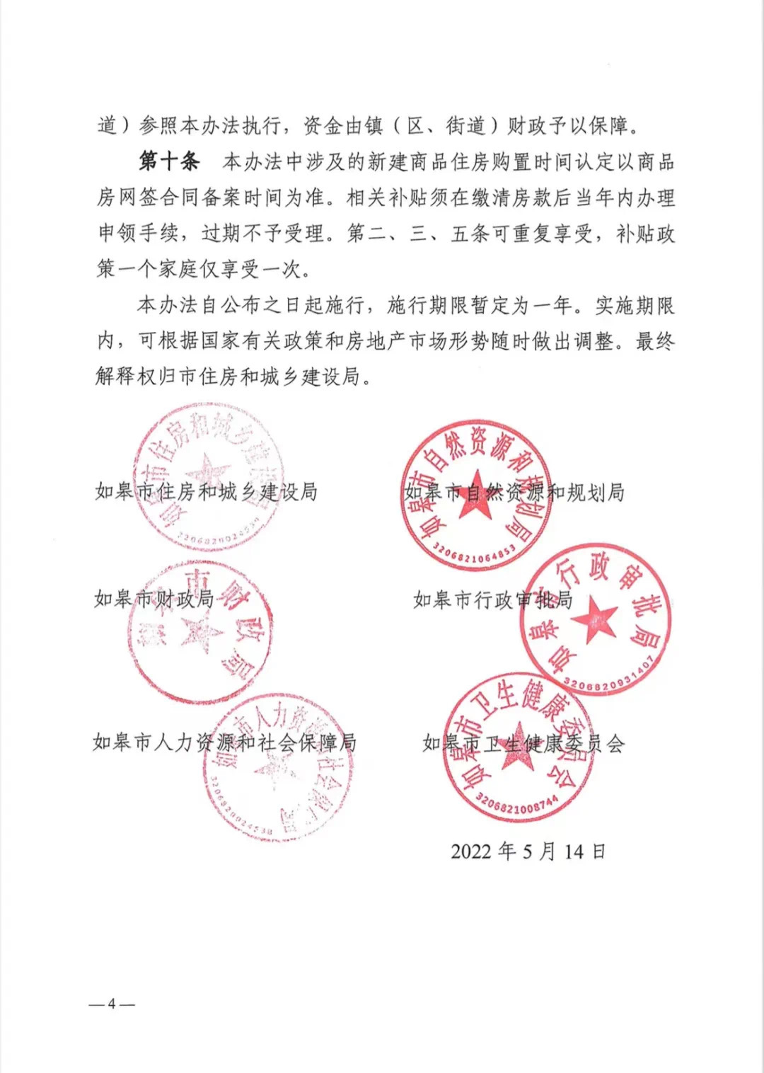 《如皋市支持居民合理住房需求的实施办法(暂行)》